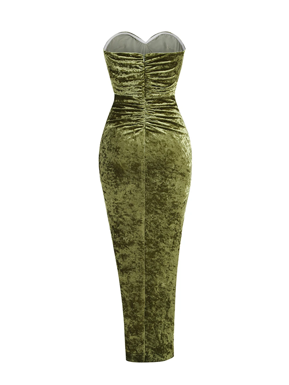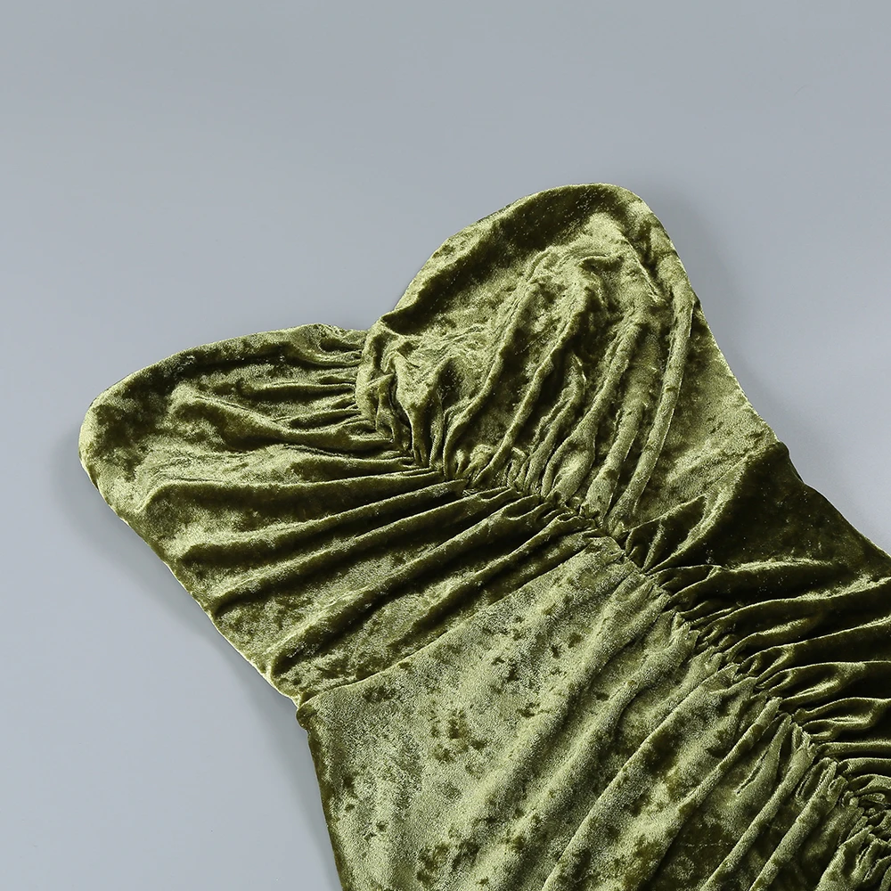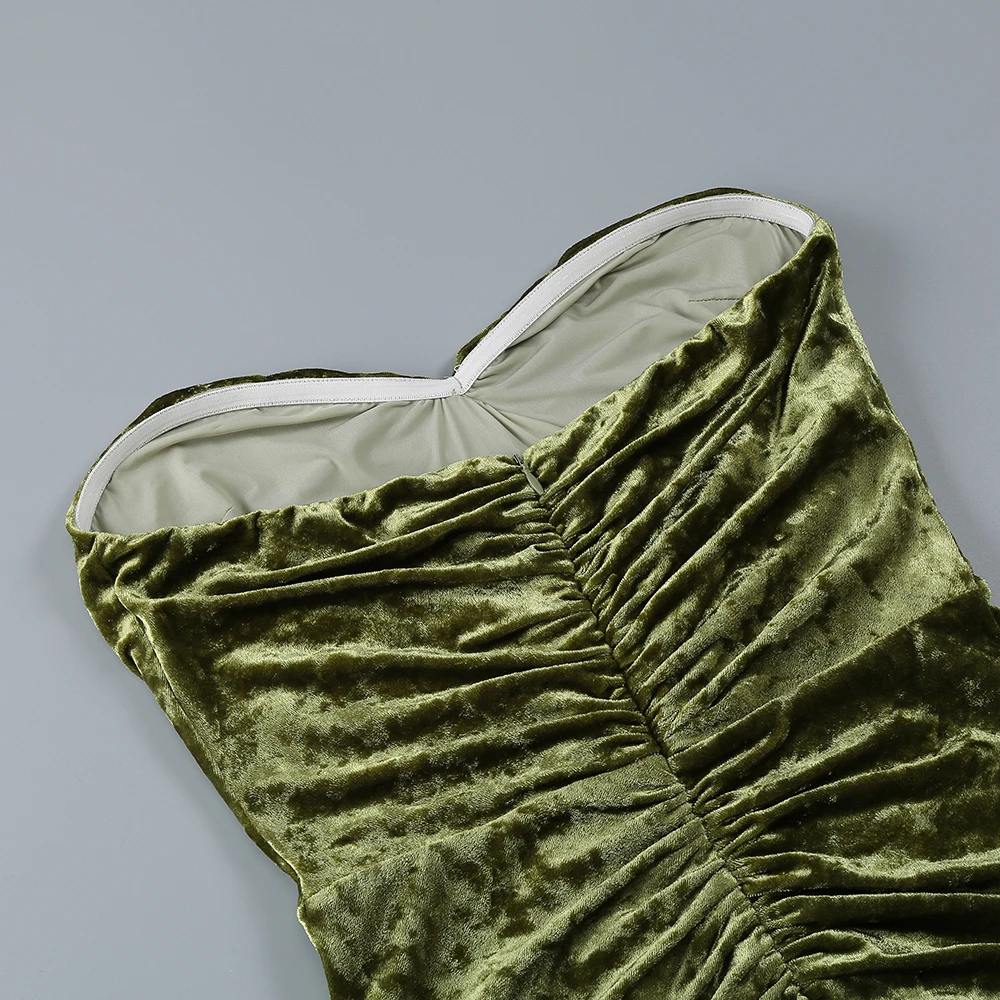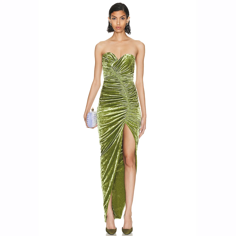 Ladies Strapless Folds High Split Backless Elegant Celebrity Cocktail Party Club Rmy Green Sleeveless Sexy Maxi Dress