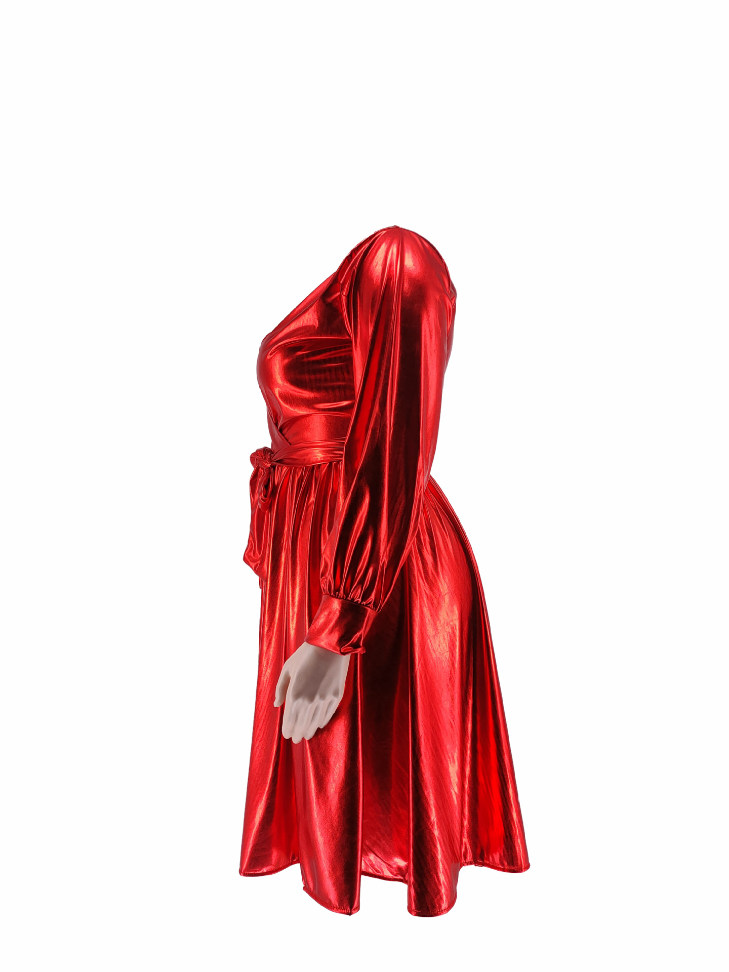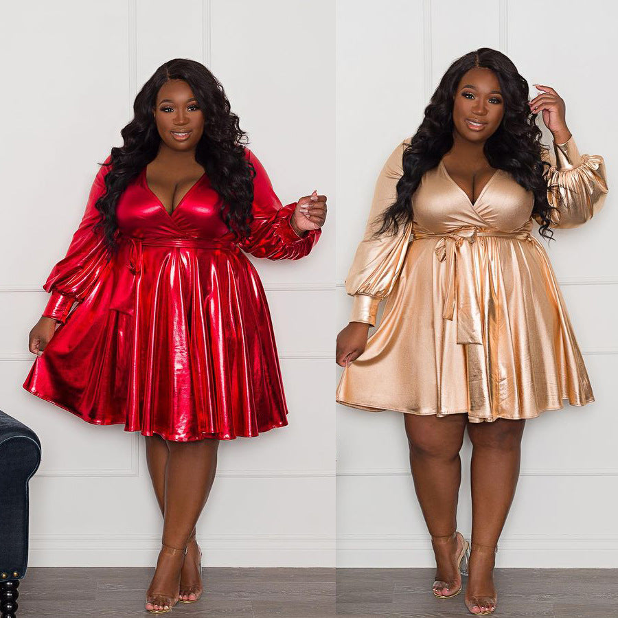 Plus Size Women's Solid Color Long Sleeve Dress Lace Up Hem Fashion Sexy Ladies Dress
