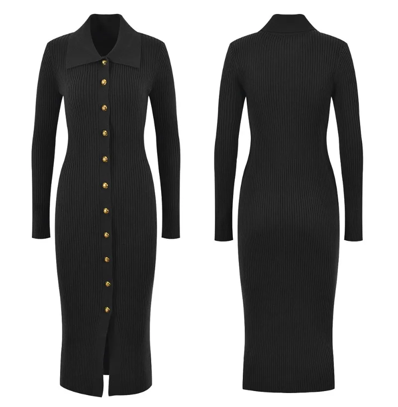 Sweater Dress Women Luxury Single Breasted Long Sleeve Knitted Dresses Autumn Winter Clothing