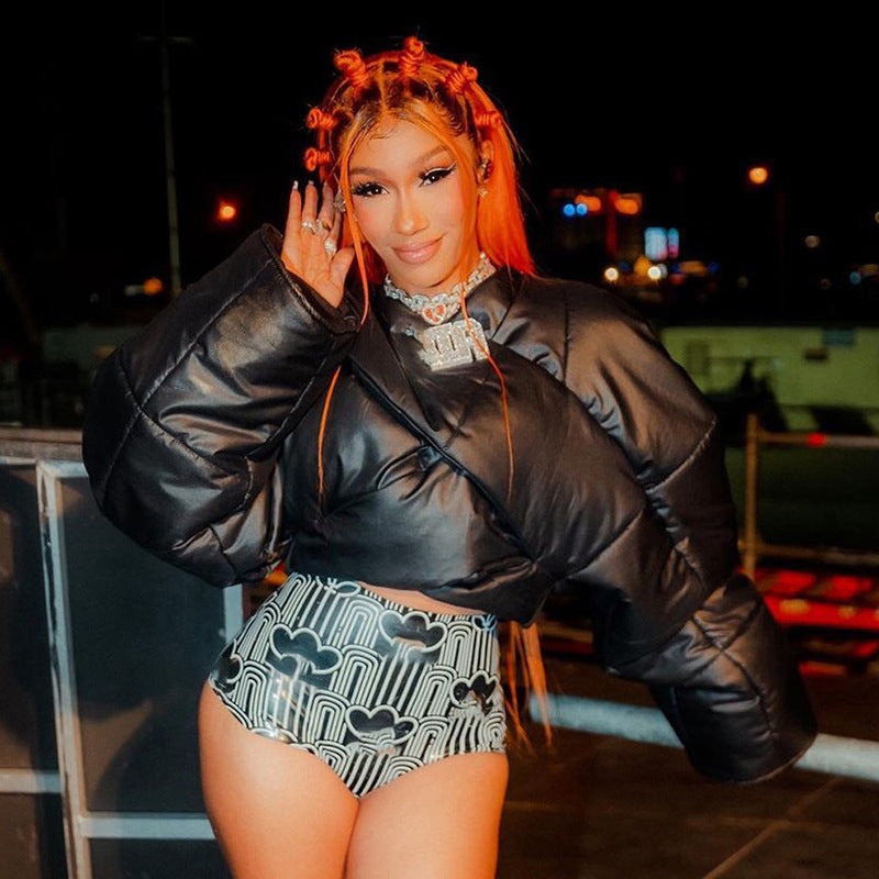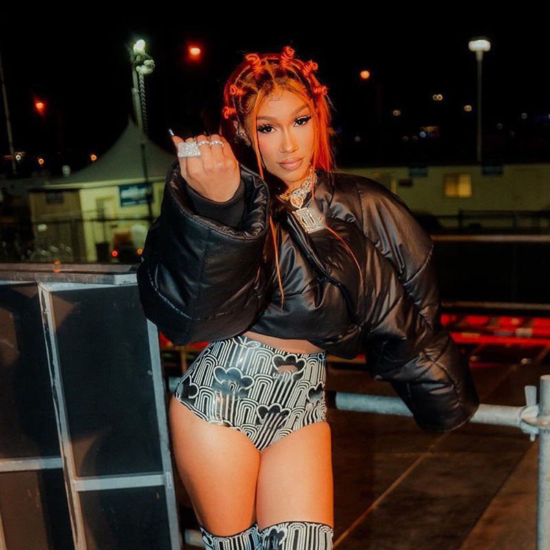 Winter New Solid Color Cotton Fashion Street Shooting Thickened Short Side Zipper Casual Jacket Women