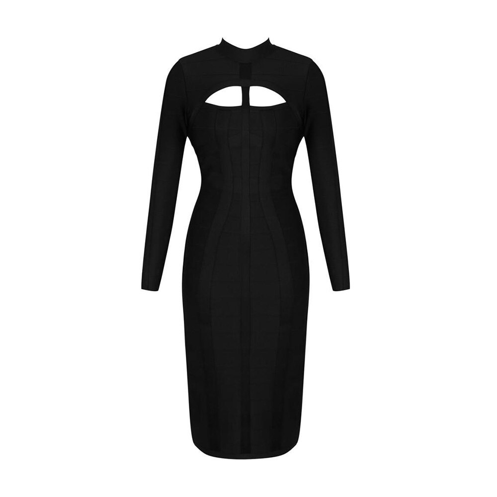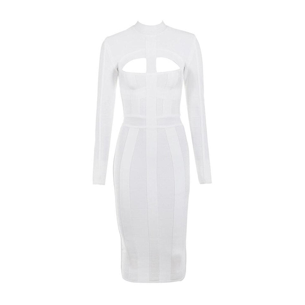Women Bodycon Bandage Dress White Long Sleeve Hollow Out Club Dress Vestidos Celebrity Evening Party Midi Dress
