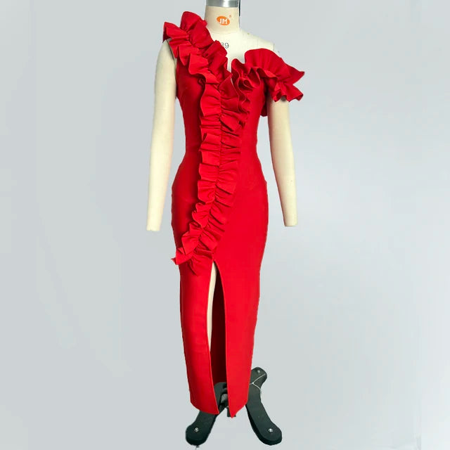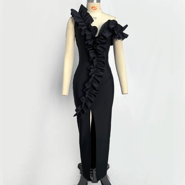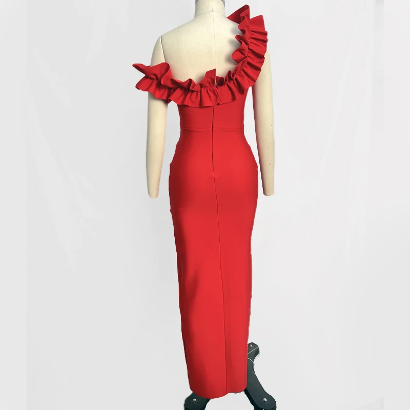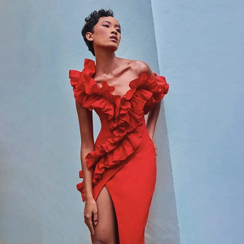 Women's Black Red Fold Medium Length Sexy Celebrity Cocktail Party Bandage Dress