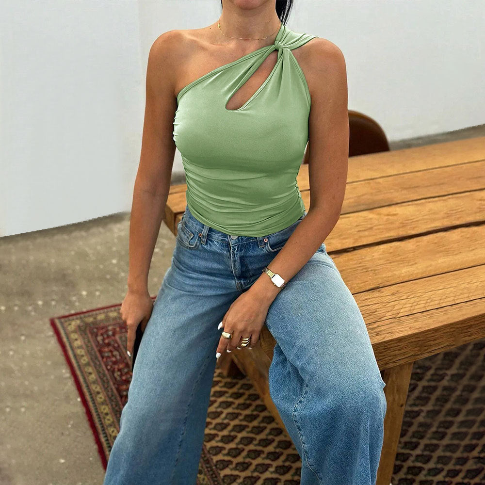 Women's European and American sexy single-sided tank top for spring and summer new short and slim fit top